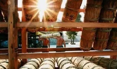 千两茶的晾晒往往会安排专人负责,为了均衡水分每天都要进行茶柱头和尾的翻动;同时还得注意雨水和露水等问题。