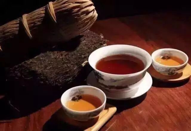 茯砖茶,汤色稍深,多为棕橙、橙红,滋味醇和;