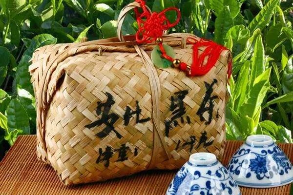 加工:云南普洱用晒青毛茶—毛茶不渥堆;云南普洱多为饼状,有生熟之分 采用黑毛茶—毛茶渥堆;多为砖型;千两茶用竹篾、粽叶、蓼叶包裹,茯茶有发花工艺。