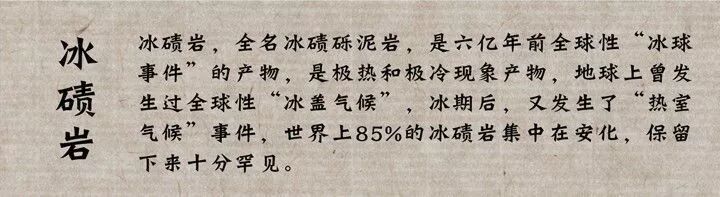 冰碛岩色泽灰褐,暗褐,质量重,坚而脆,内夹杂有砂石或其他小生物化石。自然长在安化冰碛岩的茶园土壤大都以板页岩风化发育土为主,土壤风化完全,石砾较多,土质偏酸性和弱性,通透性好,富含有机质和各种矿物质营养元素,茶树生长健壮,土壤中的大量的微量元素与矿物质,经茶树根系吸收后积累于茶叶,所产茶叶内含物非常丰富,叶片坚韧而有弹性,芳香耐泡。