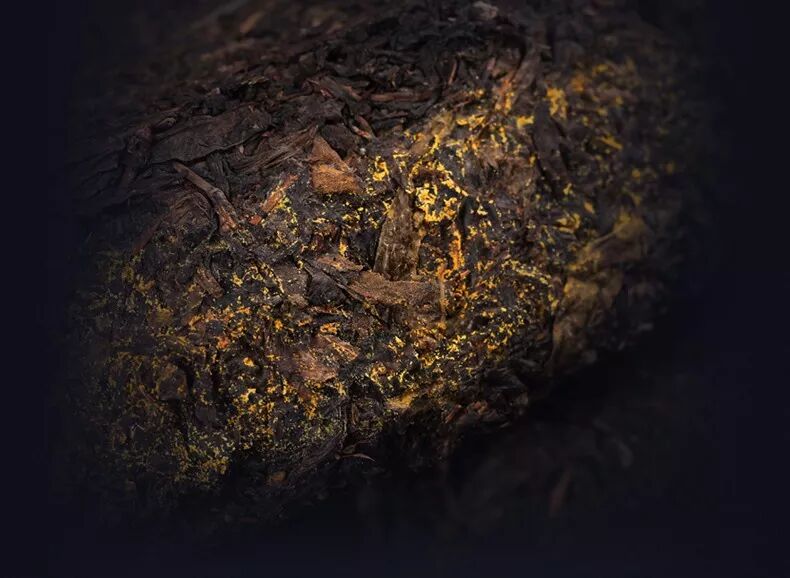 茯砖茶在黑茶中独具特色,而“金花”让茯砖茶不仅具有独特的风味口感,更具有神奇的保健功能。“金花”即冠突散囊菌,是一种益生真菌。它是茯砖茶加工过程中,在特定的温、湿度条件下,通过“发花”工艺长成的自然益生菌体,可直接影响茯砖茶的品质。其产生的黄色闭囊壳,均匀地附着在茯砖茶中,形似“米兰”。