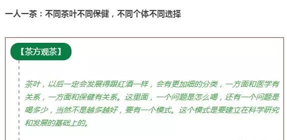 谈到疾病的治疗,那就是个体化治疗,我们研究茶也要根据这个发展。谈保健的话,也应该考虑朝个体化的方向发展。有人提到要考虑哪些人适合红茶、绿茶或白茶。这里面,一个问题是怎么喝,还有一个问题是喝多少,当然不是越多越好,要有一个模式。这个模式是要建立在科学研究和发展的基础上的。