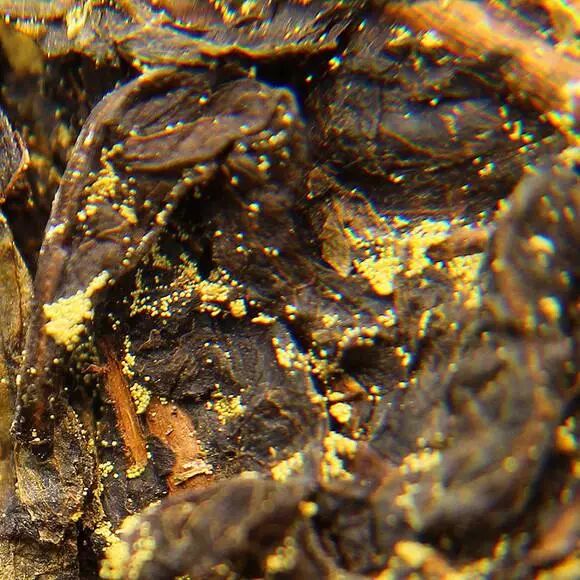很多茶友在选购茯茶时,总是很难辨别茶叶上发黄的东西是不是金花,并且很容易把金花菌与其他霉菌混淆起来,教大家几招,用肉眼就能快速辨别出金花菌。
