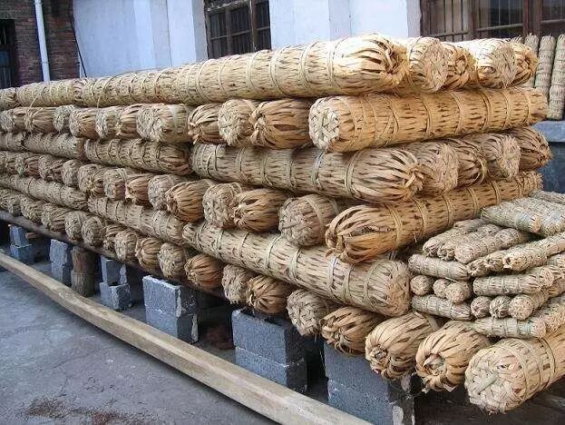 千两茶是采用安化本地产优质黑毛茶为原料,将经汽蒸变软后的黑毛茶灌入垫有蓼叶和棕片的长圆筒形的篾篓中,用棍、锤等筑制工具,运用绞、压、踩、滚、锤等技术,经多次反复锤压和束紧,使茶支达到致密坚实的要求,最后形成高160厘米左右、直径0.2米左右的呈树状的圆柱体,在自然条件下经“日晒夜露”七七四十九日,自然干燥而成。
