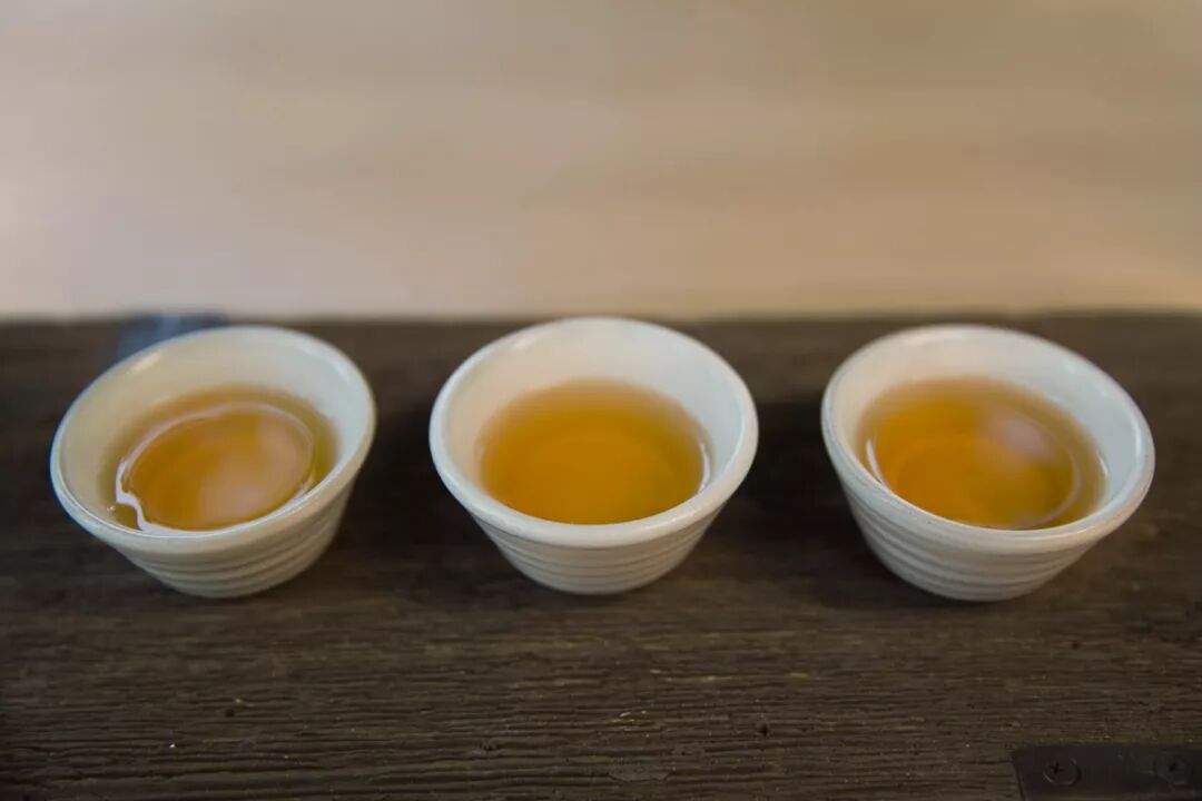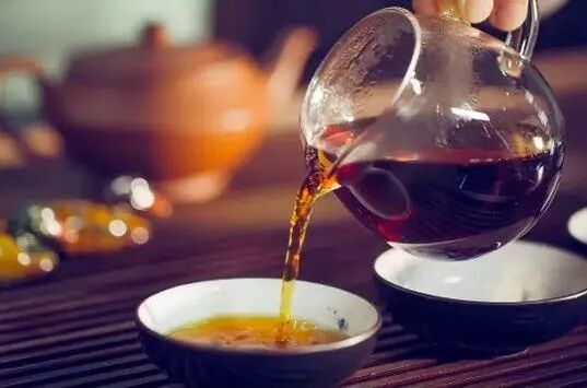 不同发酵程度的黑茶汤色深浅不同,但应透亮。新的黑茶茶汤浅黄或是橙黄色,老黑茶的茶汤清亮油润如琥珀。