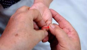 操作:令小儿掌心向上,用双手握小儿大小鱼际,从小天心向两侧分推称分阴阳。