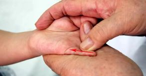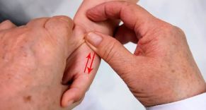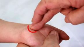 操作:拇指揉:医用左手扶托儿左掌,右手拇指螺纹面在穴上做左右揉之,常用于解表发汗。中指端揉为利关节,止痹痛、腹痛。