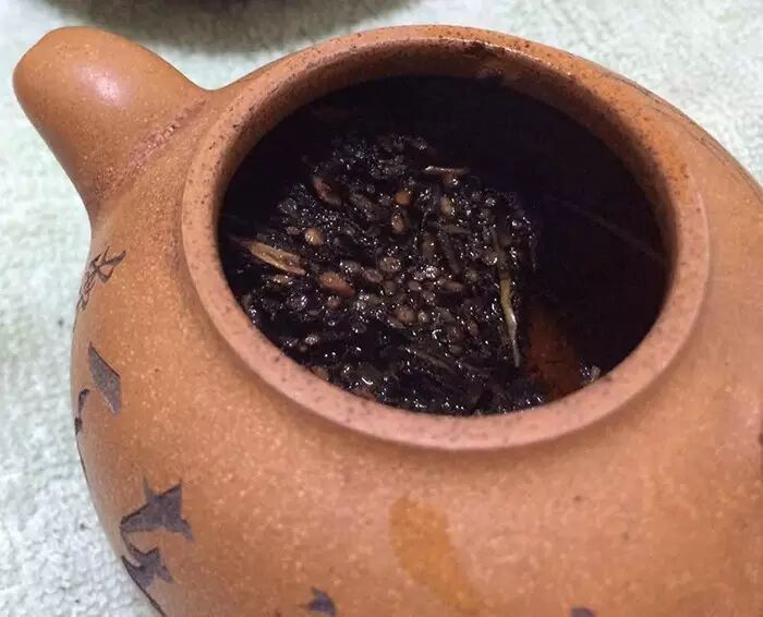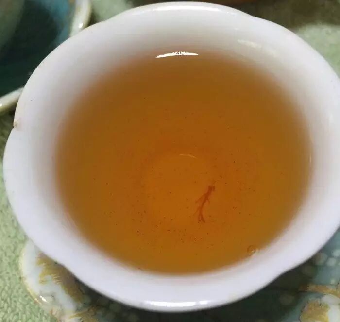 张迪老师看后说,这款黑茶明显含梗量偏多了。安化黑茶不管是哪款茶都有含梗比例分配的,多了也不好,少了也不行,茯砖的茶梗就多点,黑砖、千两茶就少点。黑茶制作国家有具体规定,各厂家也有自己的配比表。当然,茶友也可以根据自己的口感定制含梗量的多少。