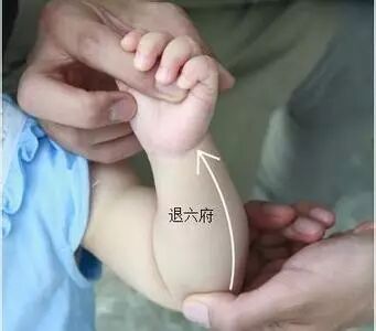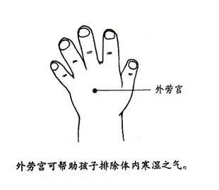 (3)揉外劳宫、二马、推三关透疹解毒。