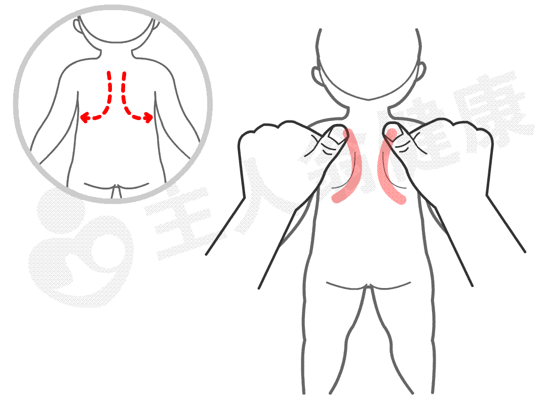 6:揉乳旁,见下图推200次;揉乳根,见下图推200次。