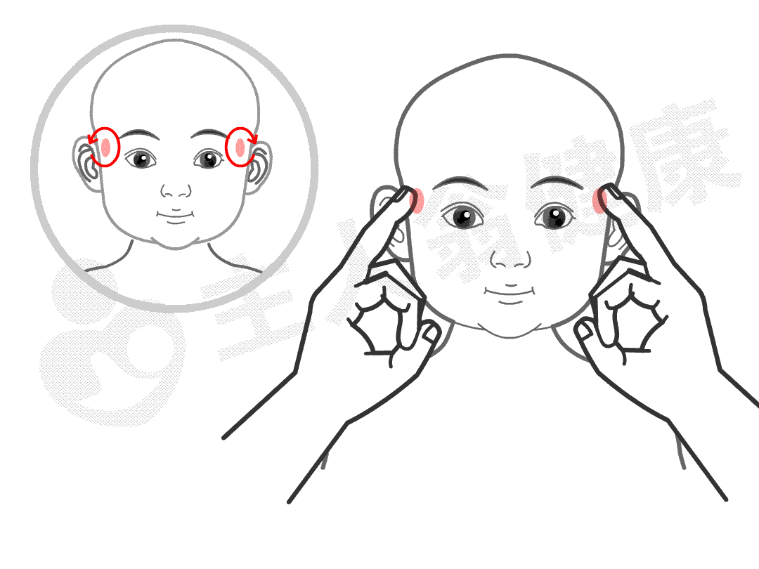 疏风解表,宣肺止咳 处方: 1:推坎宫,(眉头到眉尾)见下图推300次。