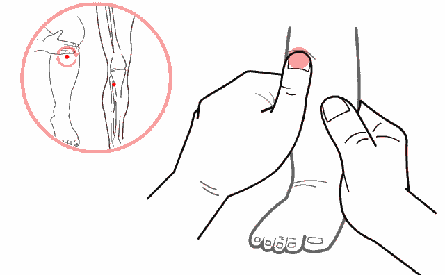 向心推为补,离心推为清,来回推之为清补。200次/分钟,按摩2~3分钟。