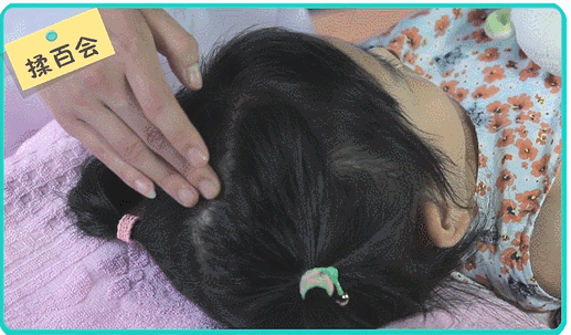 操作方法:用手指端按揉患儿的百会穴,操作 1分钟。