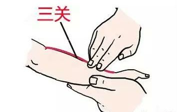 三关穴位置:前臂桡侧,从腕横纹至肘横纹成一直线