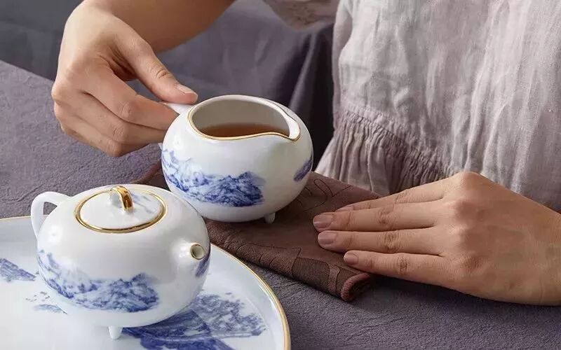 其实,使用其他茶具也一样,比如把茶杯递给客人时,也要先把杯底在茶巾上“蘸”一下,保证客人在使用杯子时是干爽的。