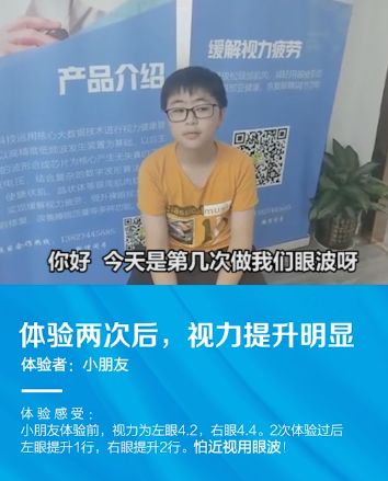 小朋友体验前,视力左眼4.2右眼4.4,体验两次后左眼提升一行,右眼提升两行。