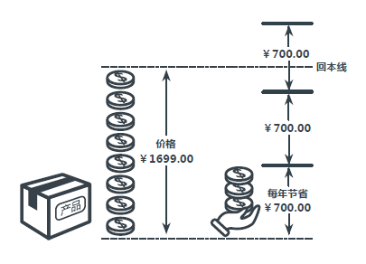 客户心里算了下,1年省700元水费,两年省1400元,用得久就更赚了客户觉得很划算,果断下单付款。