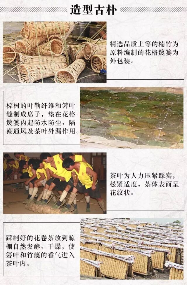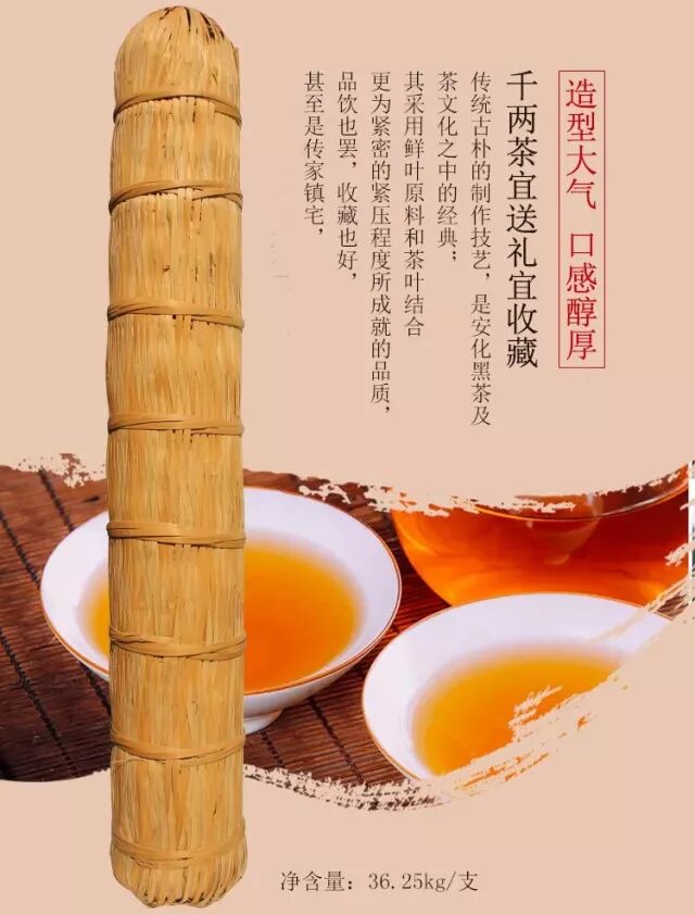 千两茶的包装不仅仅让千两茶外形古朴,更使茶品达到自然防水防潮长期储藏的优势。