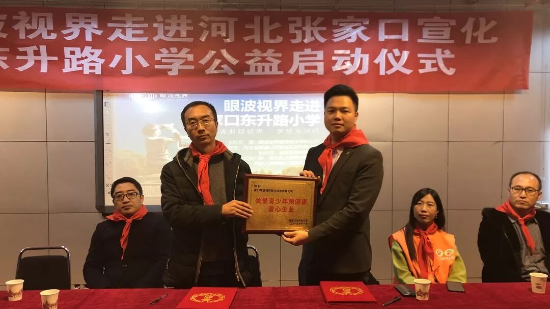 在活动中厦门眼波视界科技有限公司与张家口宣化区东升路小学签署校园公益合作协议,在张家口宣化区妇幼保健站的帮助下为眼波视界提供30名近视学生建立数据档案。