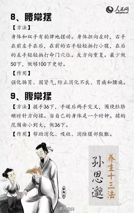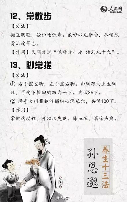 这位102岁的长寿“药王”有哪些养生秘诀?①发常梳、②目常运、③齿常叩、④漱玉津、⑤耳常鼓 、⑥面常洗、⑦头常摇、⑧腰常摆、⑨腹常揉、⑩摄谷道、⑪膝常扭、⑫常散步、⑬脚常搓。要坚持哦!为了家人朋友的健康,转发收藏~!↓↓