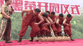 开园仪式活动现场,欢歌笑语,彩旗飘飘。具有安化地域风情的节目轮番上演,茶歌对唱、踩茶号子不停地扣动着人们的心弦,吸引着众多游人的目光。