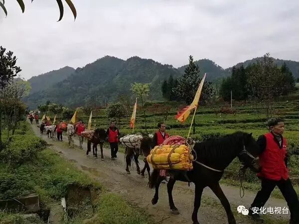 宣布开园后,伴随着《茶马古道马帮来》的歌声,一只马帮队伍驮着百两茶缓缓进入茶园。马帮是中国历史上万里茶路上最重要的一个交通工具,特别是安化黑茶在历史上基本上是以马运输到西北的,运输的过程中逐渐形成了一个很有特色的“马帮精神”。现场的游客不仅可以近距离的观察马帮托运的过程,还可以亲身体验骑马的乐趣。