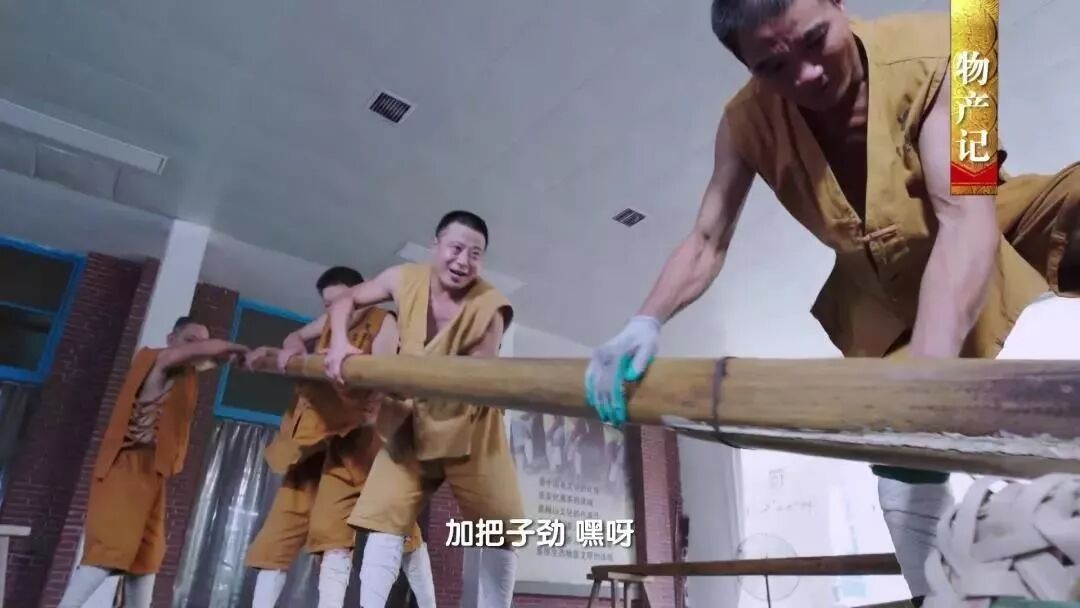 千两茶加工工艺的核心是七人小组踩制法,凝七人之阳刚,聚七音之韵律,体现了合作精神。