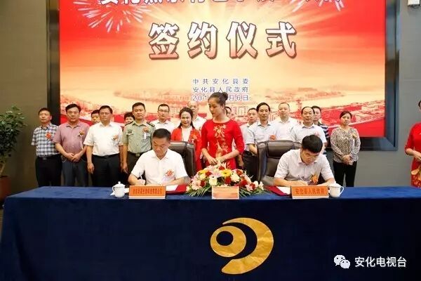2017年9月6日上午10时,“安化黑茶特色小镇”项目签约仪式在万隆黑茶产业园举行,县委书记熊哲文出席并致辞。县委副书记、县长肖义与湖南华莱生物科技有限公司董事长陈社强签订项目战略合作框架协议。县委常委、政法委书记李丰主持签约仪式。