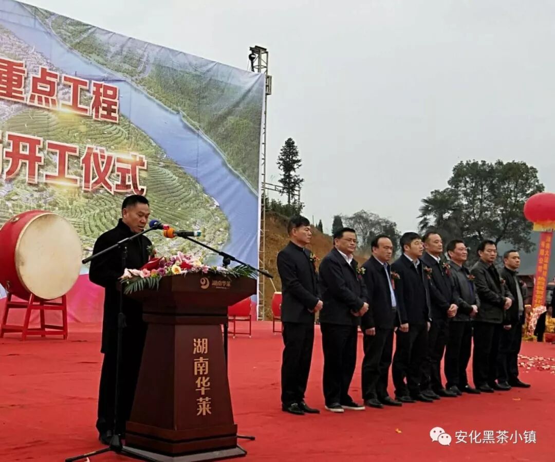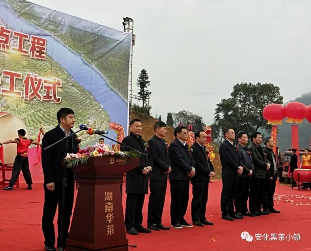 在家的县级领导、县直部门主要负责人、东坪镇、县城南区、县经开区、安化黑茶特色小镇项目建设指挥部、湖南华莱生物科技有限公司、湖南安化黑茶小镇建设有限公司、施工单位及全国各地的茶商代表近3000人见证这一庄严隆重的时刻。