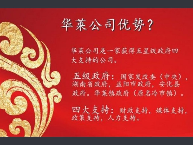 在中国的大地上, 一个民族化的品牌新星 正在冉冉升起! “华莱现象” 逐步成为燎原之势! 一个创建中的华莱城, 三年内投资超过100亿元;打造安化黑茶特色小镇、桃江华莱产业园、华莱国际大酒店、华莱国际学校、华莱国际社区等 已经启动... ...