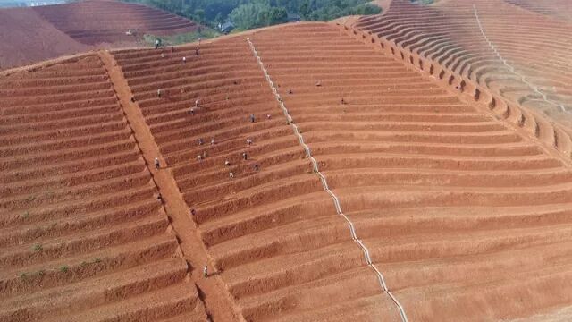 12月18日,安化县“茶乡花海”项目基地一派热火朝天的景象,工人结队忙着栽茶种树。今年完成投资1亿元,完成六项工程,“茶乡花海”已初见规模。
