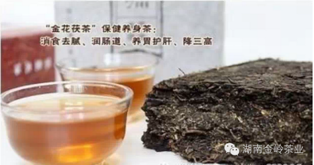 茯茶是一种全发酵茶,属黑茶珍品。采用优质山地茶叶为原料,将传统工艺结合现代科技加工而成。产品外观为砖形,色泽黑润;砖内金花(冠突散囊菌)茂盛,菌花香浓郁,经久耐泡;开汤后汤色橙亮至红亮,滋味醇厚,香气纯正。长期饮用,消食、暖胃、减肥、降脂效果显著。是现代人日常养生佳品。