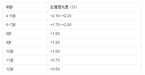 (解读:4-5岁储备值应当有远视210度-220度,6-7岁应当有远视175度-200度,以此类推,在这个范畴之内,孩子的视力就是安全状态。)