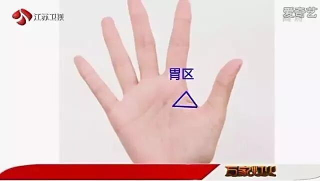 看手掌的胃区是否饱满。拇指根部到掌纹处画一条直线,形成的三角区域就是我们的胃区。用另一只手压一压看是否有弹性,如果压后松开很快复原,这样的人胃气就很好,反之是胃气不足的表现。