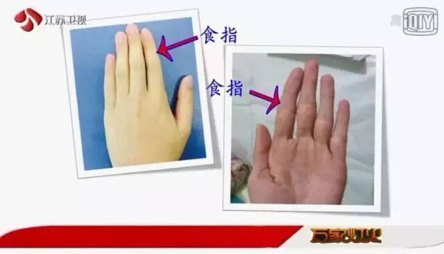 异常情况一:食指弯曲、向中指靠拢,末节变细,弹性差,干瘪没有弹性;