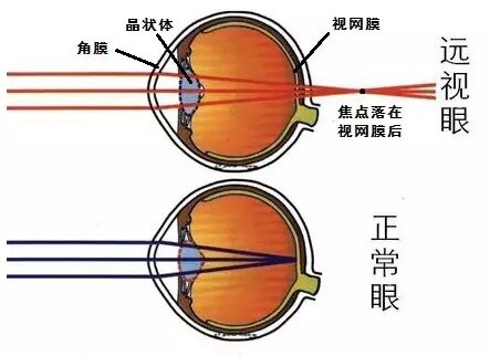 远视眼(hyperopia),从远处来的平行光线进入眼内后在视网膜后形成焦点,在视网膜上不能形成清晰的像。