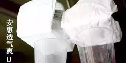 用两个装有热水杯子,分别放上安惠卫生巾和其他品牌卫生巾,可以看到,放有安惠卫生巾的杯子里有水蒸气,说明是透气的,而它牌卫生巾没有水蒸气,采用的是不透气的塑料薄膜,太闷热了!!!