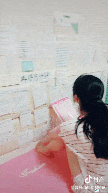 这个快参加高考的女孩,墙上贴满了备考资料,小编还注意到了墙上一些醒目的大字:再背一会儿,再学15分钟。
