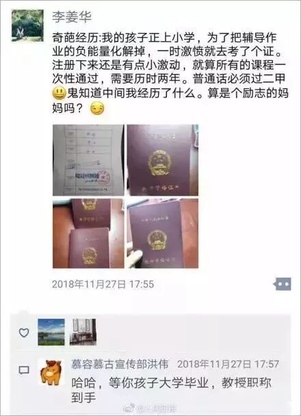 别人的孩子写作业有娘陪,还顺便考了教师资格证;而你家的孩子没人管,娘还整天打麻将。
