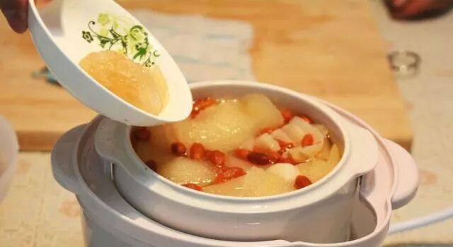做法:将百合清水浸泡半小时,放到开水锅煮3分钟,取出沥干水分;雪梨去梨心,清洗干净后连皮切块;将雪梨块、百合放入砂锅中,加入适量的水,小火炖20分钟即可,然后加入冰糖后就可食用了。清肺、润肺、抗病毒效果很好。