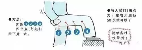 由于大腿肌肉和脂肪都很厚,因此必需用力,而且以每秒大约两下的节奏敲,才能有效刺激穴位。