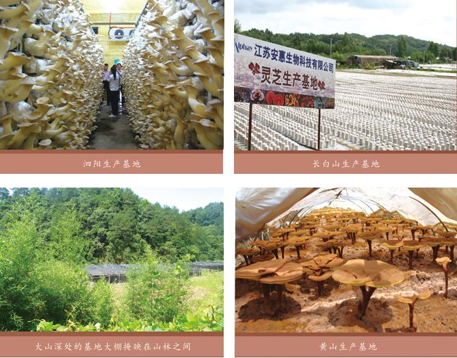 安惠公司除在江苏昆山、泗阳和北京等地拥有能够代表先进生产水平的工厂化栽培基地外,还在吉林长白山、安徽黄山以及浙江龙泉等自然生态环境中建立了原料的专供基地,既保证了产品原料的生态、绿色、环保、有机,也确保了广大菇农的利益,更维护了安惠产品广大消费者的权益。