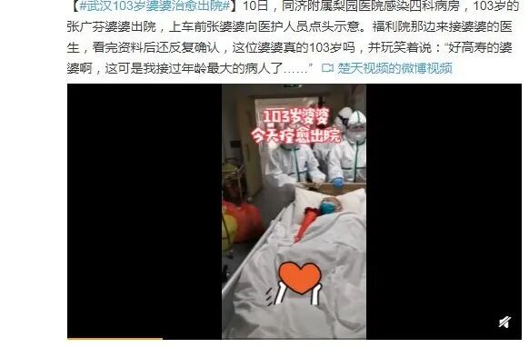最近,武汉一位103岁的婆婆治愈出院了,医生说,这与她本身身体体质好,无太多基础病有很大关系。