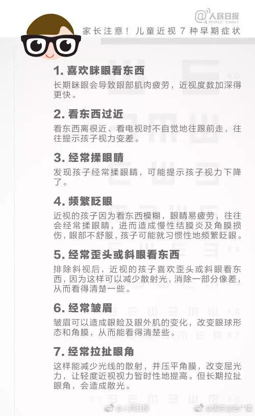 另外,家长朋友们,你们还需要注意儿童近视的这七种早期现象,力求从小“抓起”,从小预防,减少孩子们的近视率。