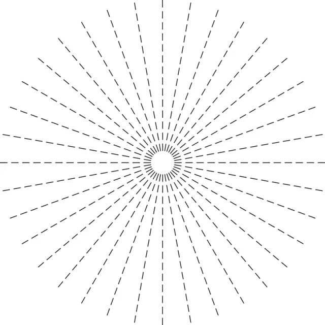 如所有虚线均匀排布,没有特别的深浅区分,则不存在眼睛明显的散光现象