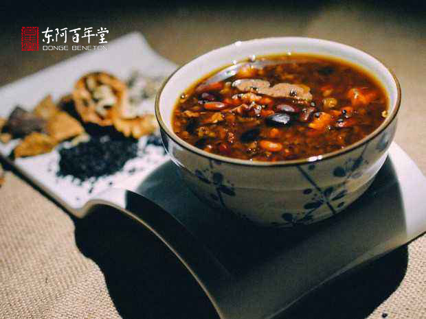 阿胶,性平味甘,入肝肺肾三经,入肾经滋阴补精,化生血液、元气,强化肾脏功能,肾气充足,白发自然不生;入肝经补血,调节肝脏功能,保持气血旺盛,发为血之余,表现在外部就是头发生长旺盛,乌黑亮丽,人自然也会精神愉悦,精力充沛。