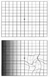 盖着一只眼,用另一只眼看中心点,如果中心点周围出现空缺或曲线,很可能是眼睛出了问题。