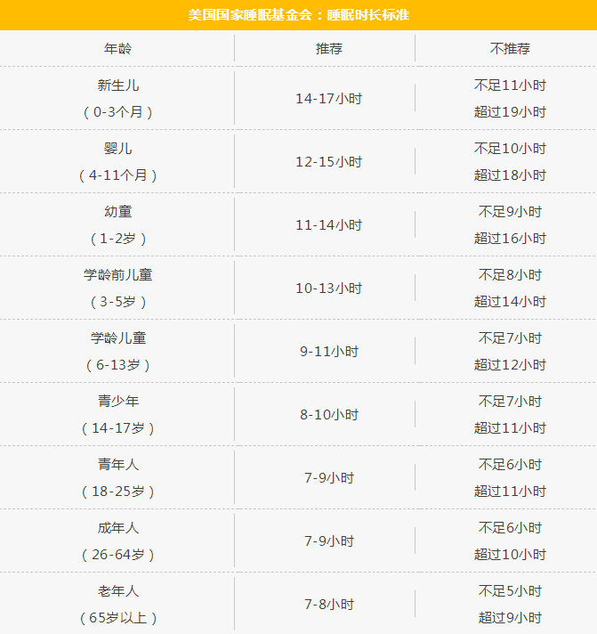 首先家长们先对照下面的睡眠时长标准表,看看不同年龄段的孩子的标准睡眠时长,看看自家的孩子达标没有?
