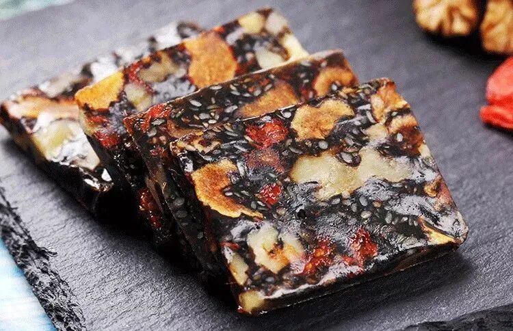 阿胶很补,所以具有一定的燥性,为此,古人用智慧及传统工艺制作,加入辅料阿胶,枸杞,红枣,核桃,黑芝麻,冰糖,黄酒等,制成了一道精致滋补的糕点—手工阿胶糕!