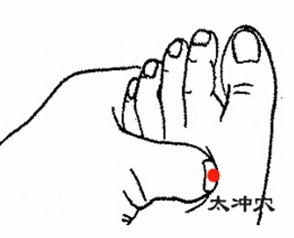 太冲穴位于足背侧,第一、二跖骨结合部之前凹陷处。太冲穴为人体足厥阴肝经上的重要穴道之一,是肝经的原穴,大约相当于储存肝经元气的仓库,按摩刺激太冲穴,能很好地调动肝经的元气,使肝脏功能正常。